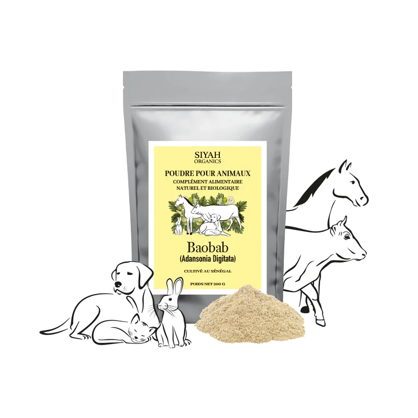 Découvrez les bienfaits digestifs de notre Poudre de Fruit de Baobab pour Animaux de compagnie.