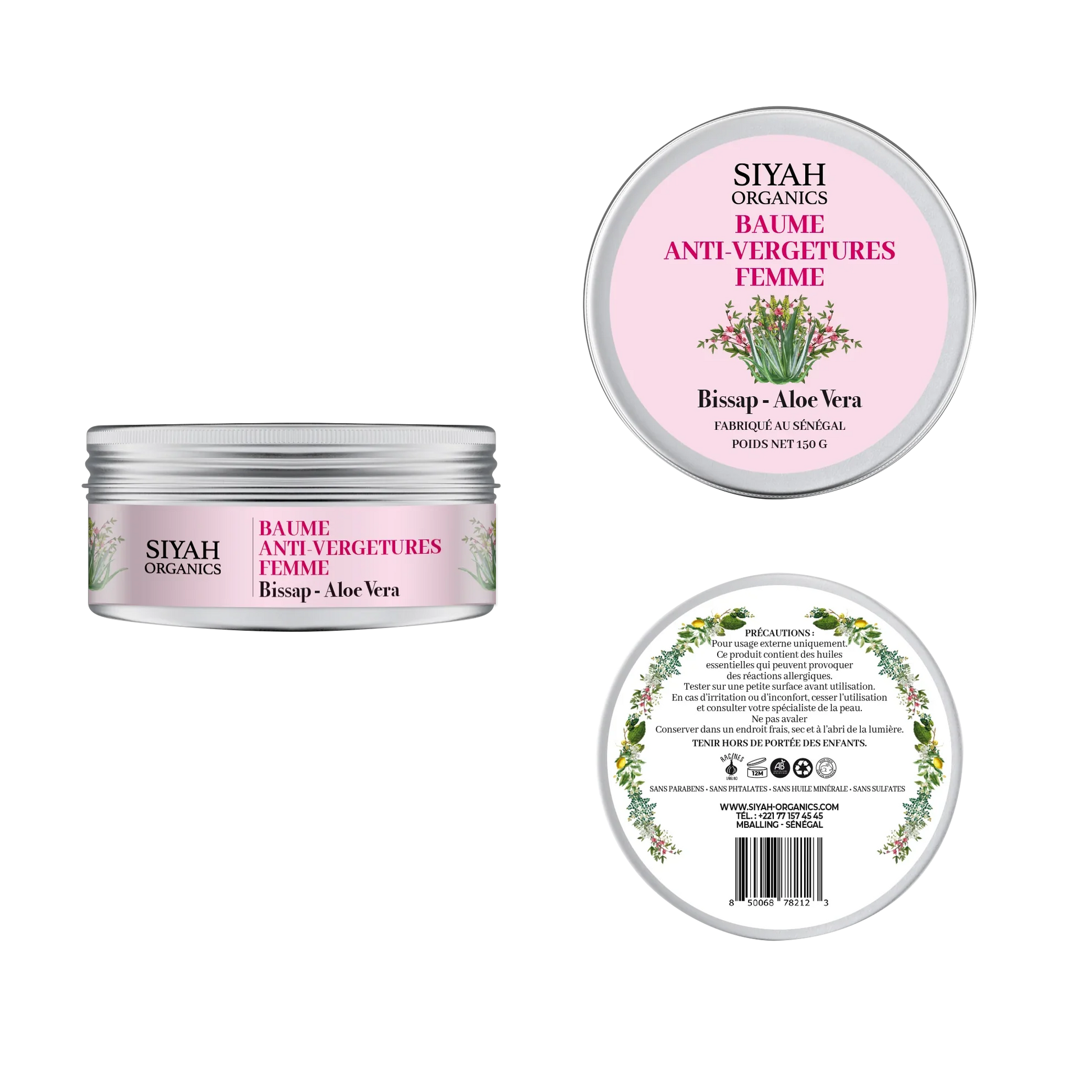 Ce baume est formulé pour prévenir l’apparition des vergetures et améliorer l’élasticité de la peau pendant et après la grossesse. Grâce aux bienfaits du Bissap et de l’Aloe Vera, il nourrit intensément, apaise les tiraillements et favorise la régénération de la peau.