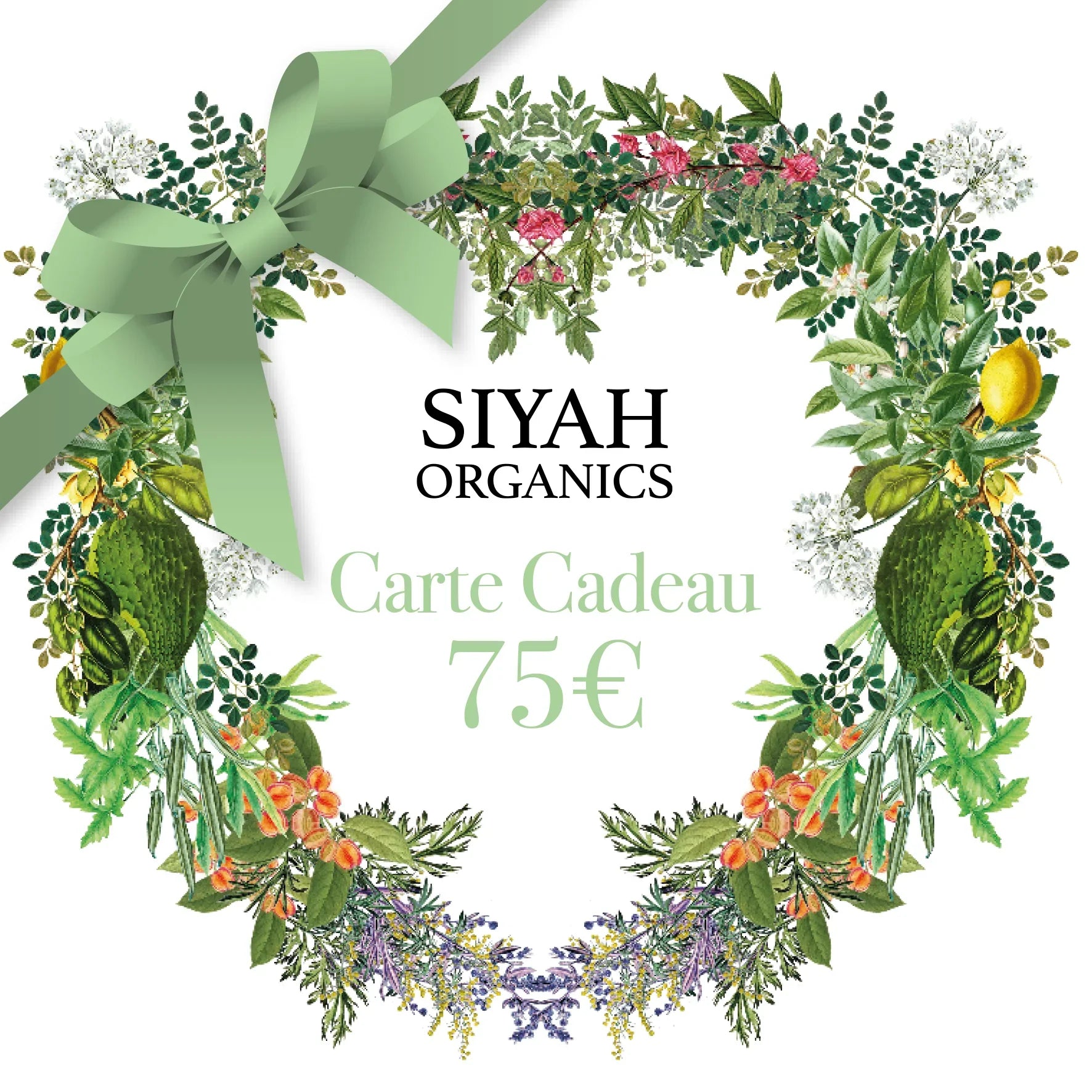 Offrez à vos proches des produits Siyah Organics d'une valeur de 15 € à 150 €. Les cartes-cadeaux sont valables uniquement en ligne sur siyah-organics, avec le code fourni. Valable un an.