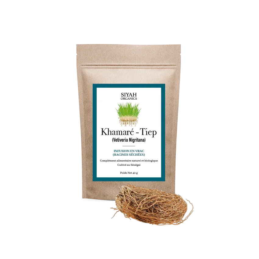 Le Khamare - Tiep , aussi connu sous le nom de Vétiver ou « Plante du bien-être féminin » est traditionnellement utilisé pour favoriser l'équilibre hormonal et soulager les symptômes du syndrome prémenstruel et de la ménopause. Apprécié pour ses propriétés apaisantes et purifiantes, il favorise également la relaxation, la santé de la peau et le bien-être général.