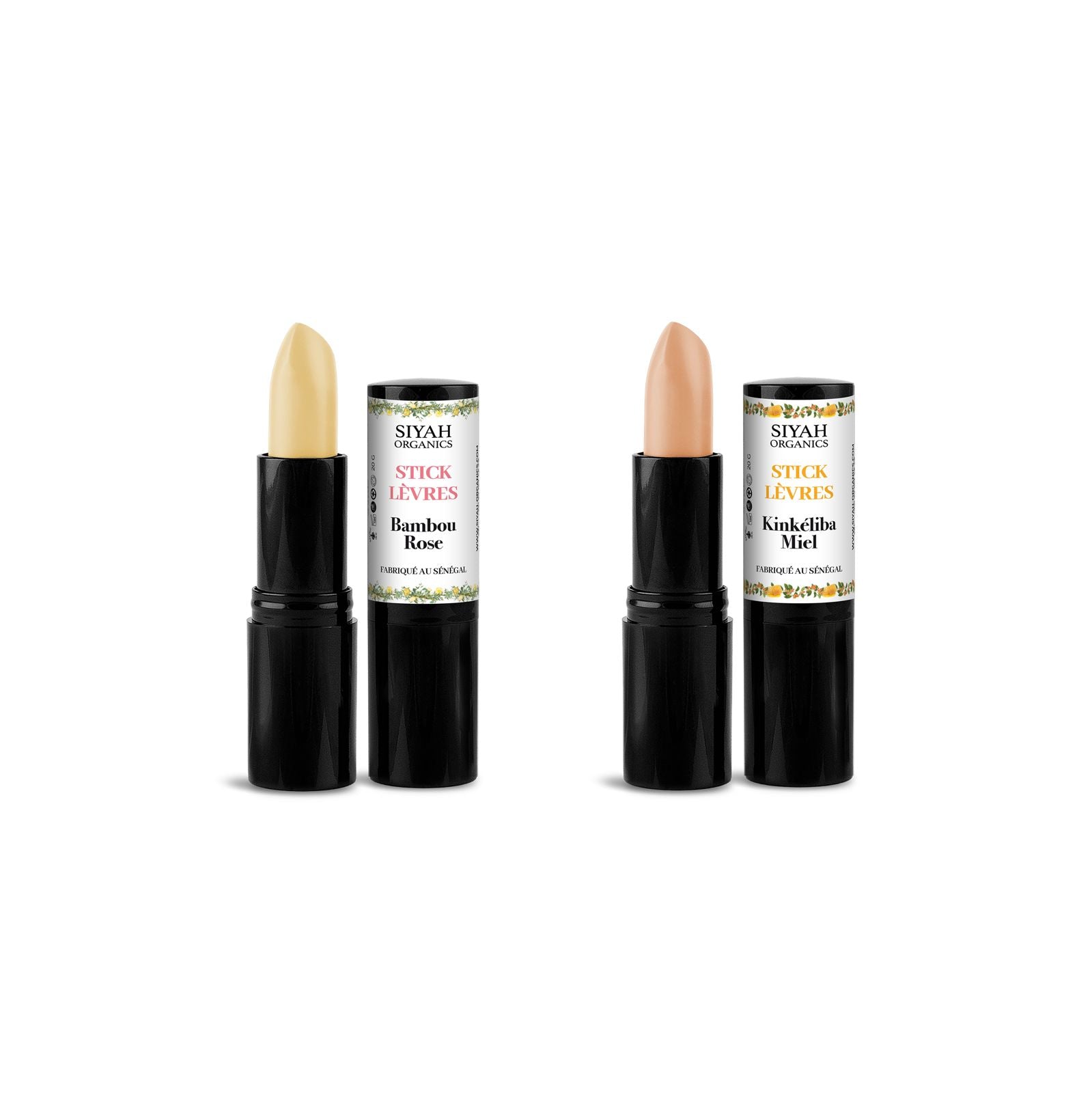Offrez à vos lèvres un soin doux et durable avec nos Sticks à Lèvres nourrissants Bambou - Rose et Miel - Kinkéliba.