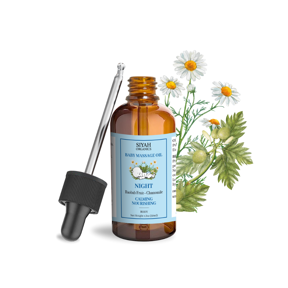 Discover the comforting benefits of our Baobab & Chamomile Baby PM Massage Oil.