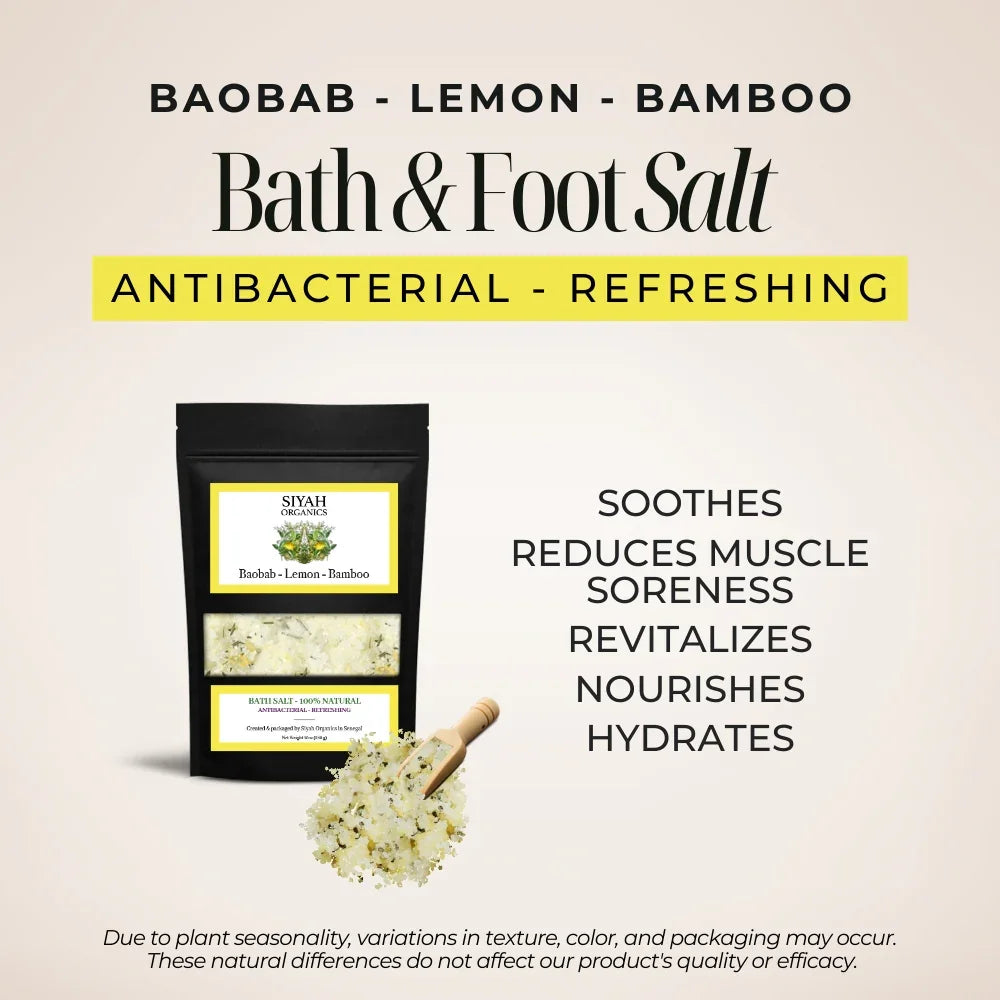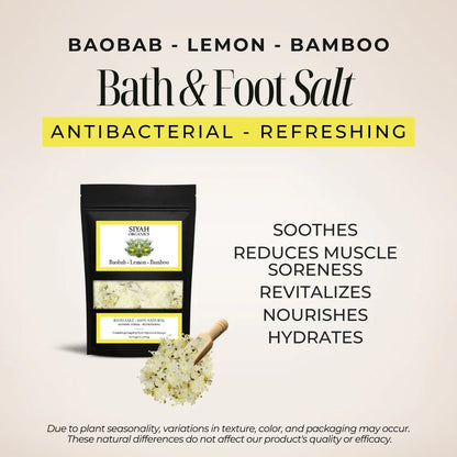 Discover the revitalizing benefits of our Baobab - Lemon - Bamboo & Neem - Peppermint - Tea Tree Bath & Foot Salts.