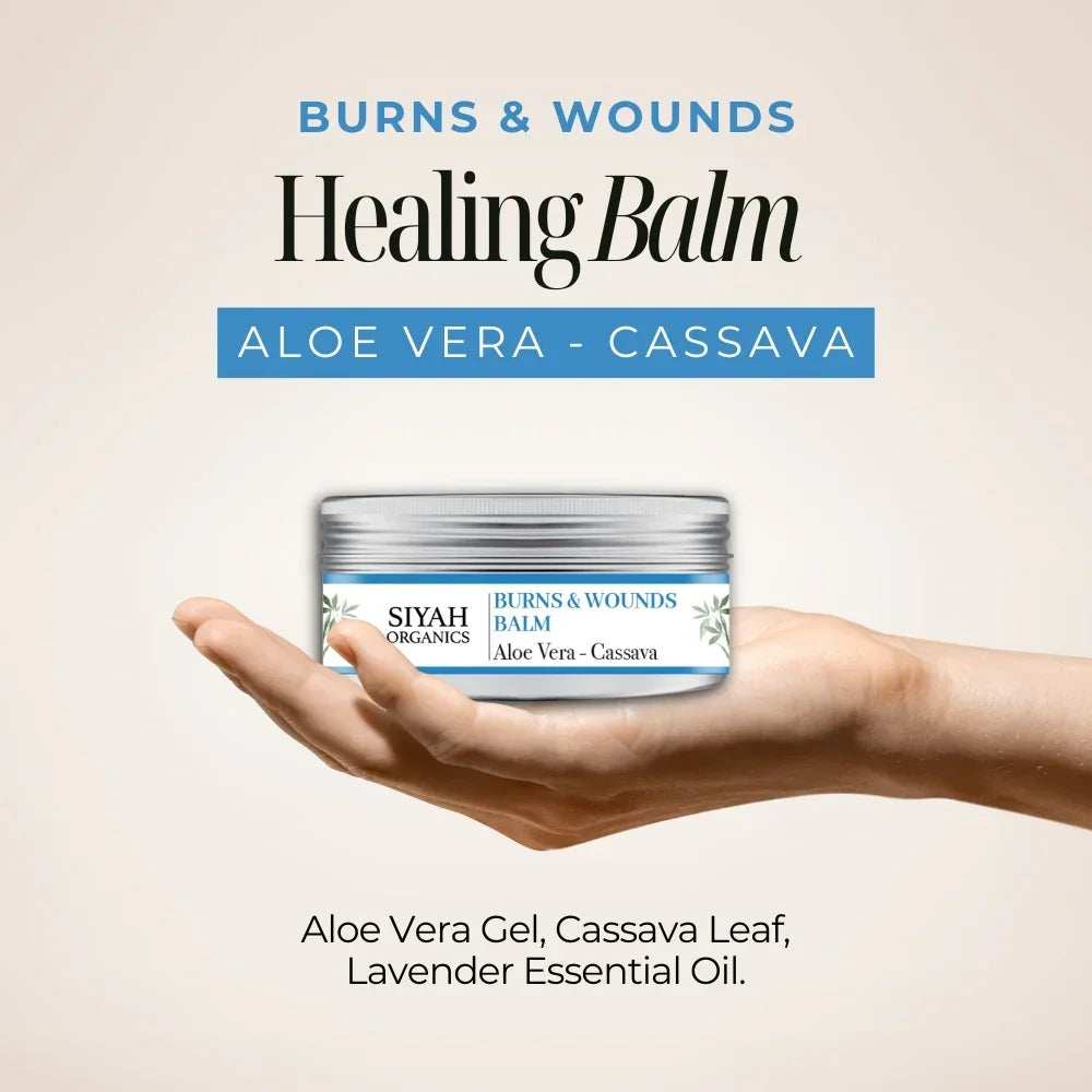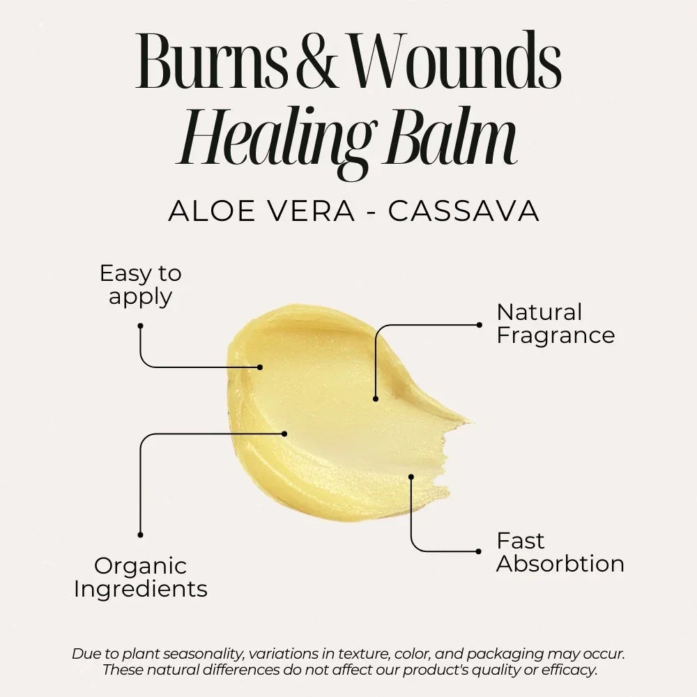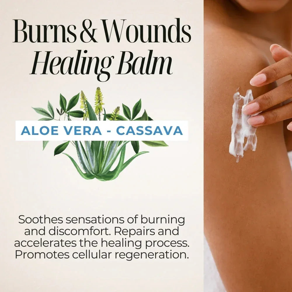 Enriched with Aloe Vera and Cassava, this balm helps soothe burns and support skin recovery. With its hydrating and protective properties, it promotes faster healing and skin renewal.