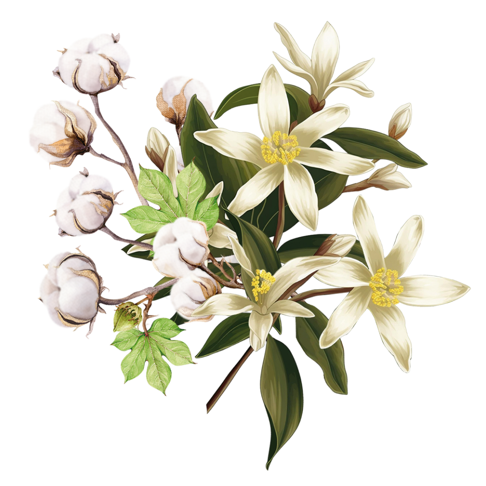 Cotton - Neroli: Distilled Water, White Tea Extract, Witch-Hazel, Neroli Essential Oil, Cotton Essential Oil.