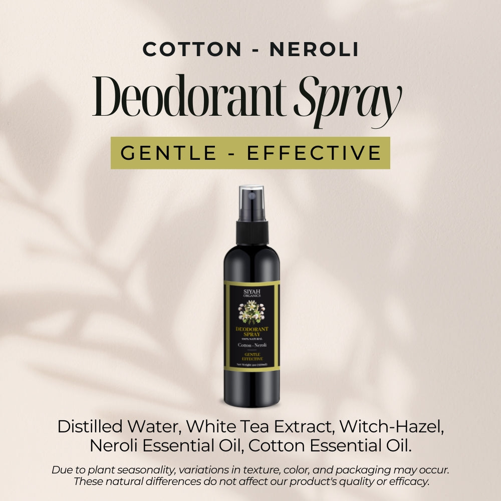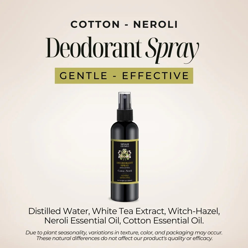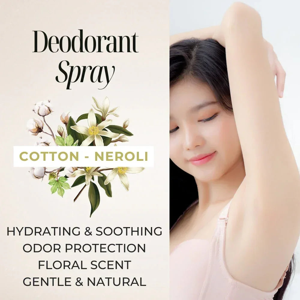 A gentle yet effective deodorant spray infused with the soft, powdery freshness of Cotton and the delicate floral notes of Neroli. This lightweight formula keeps you feeling clean and revitalized all day.