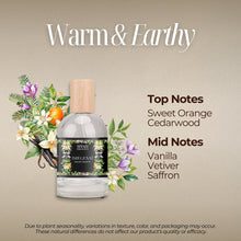 A warm and earthy fragrance that blends the vibrant zest of Sweet Orange with the grounding essence of Cedarwood. The heart unfolds with rich notes of Vanilla, Vetiver, and Saffron, creating a bold and sophisticated scent.