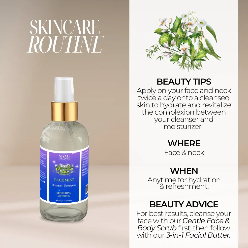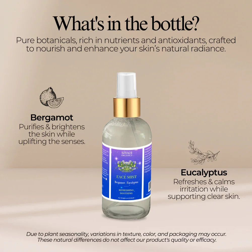 Discover the refreshing benefits of our Bergamot & Eucalyptus Face Mist.