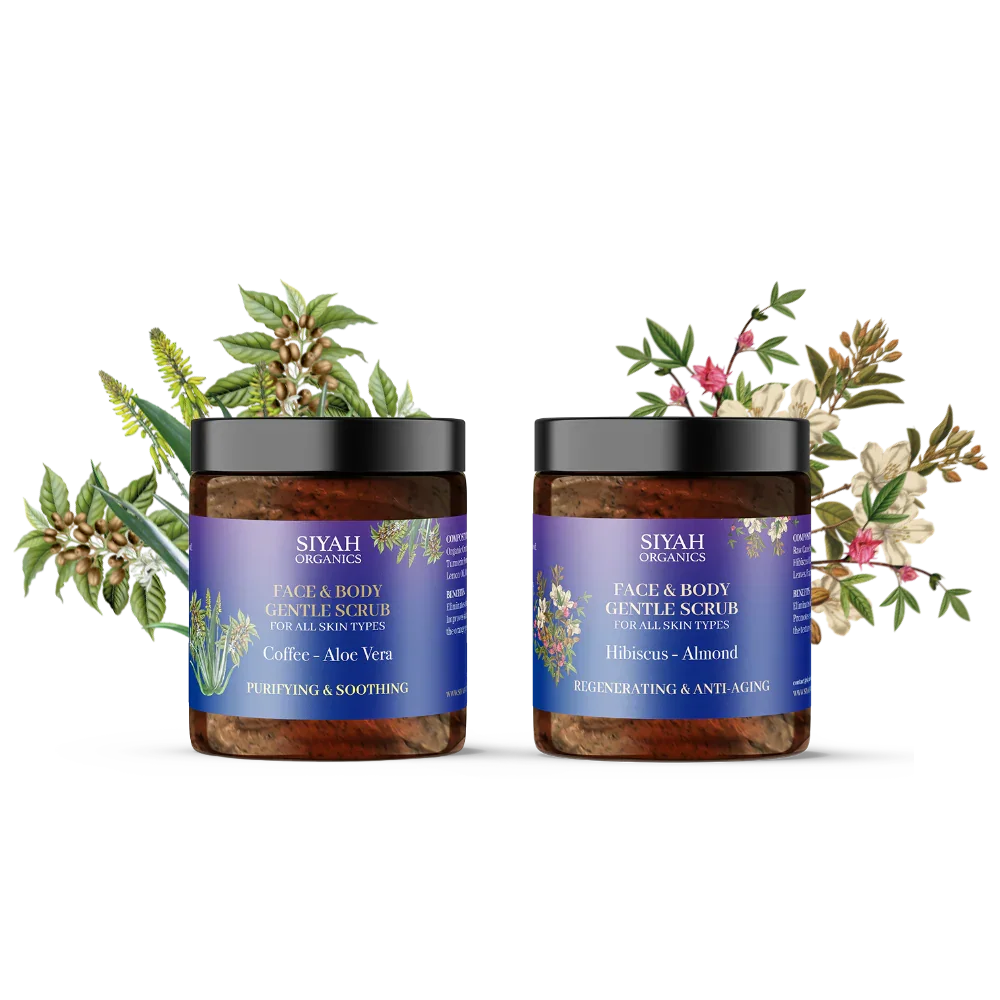 Reveal radiant, refreshed skin with our gentle Hibiscus & Almond and Coffee & Aloe Vera Face & Body Scrubs. These nourishing blends exfoliate, soften, and brighten—leaving your skin smooth and naturally glowing.