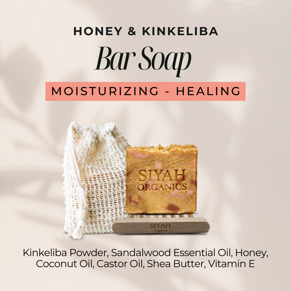 Kinkeliba Powder, Sandalwood Essential Oil, Honey, Coconut Oil, Castor Oil, Shea Butter, Vitamin E.
