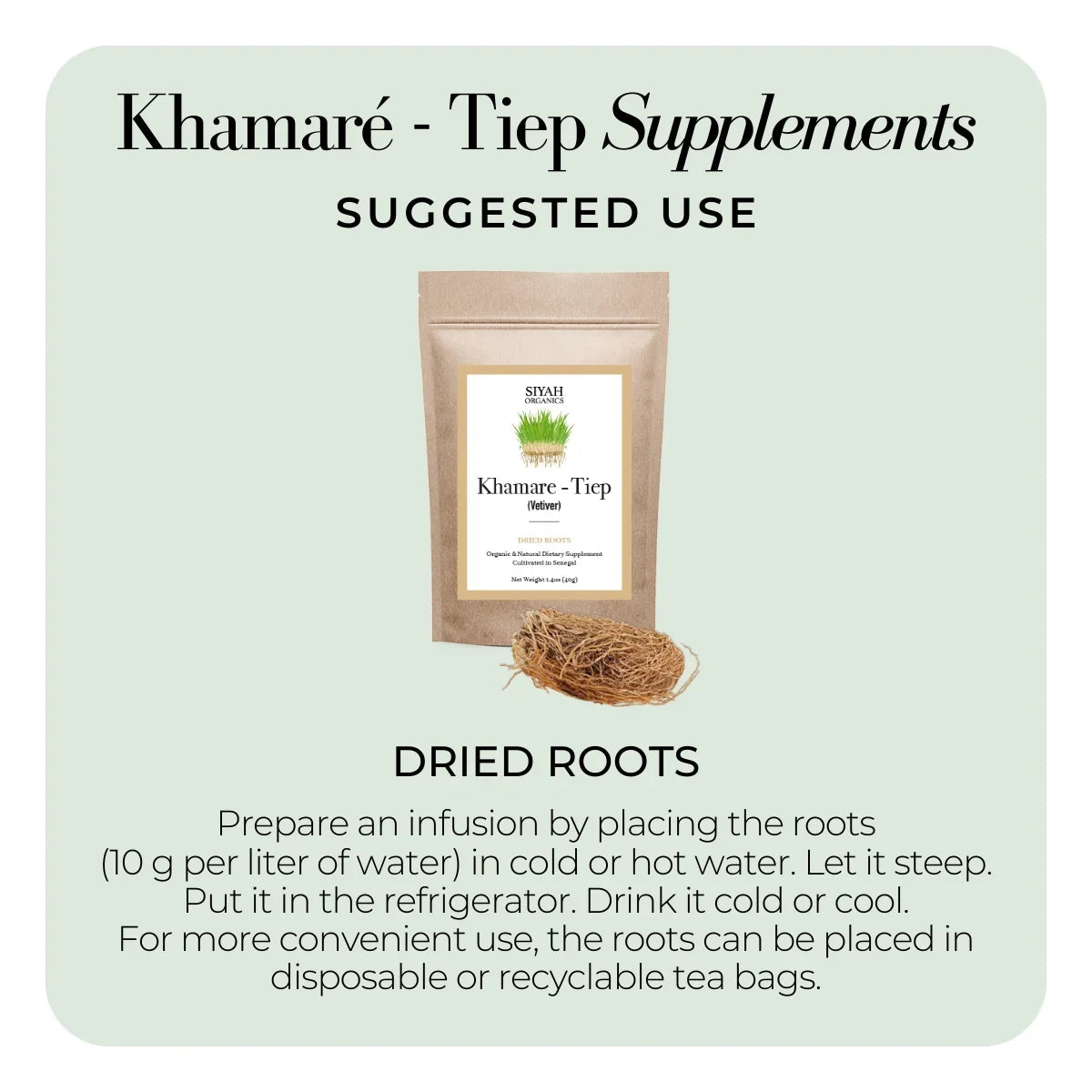 For more convenient use, the roots can be placed in disposable or recyclable tea bags.