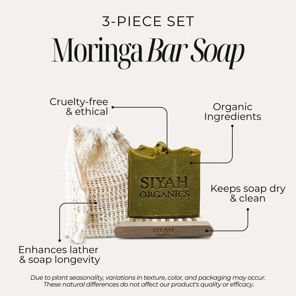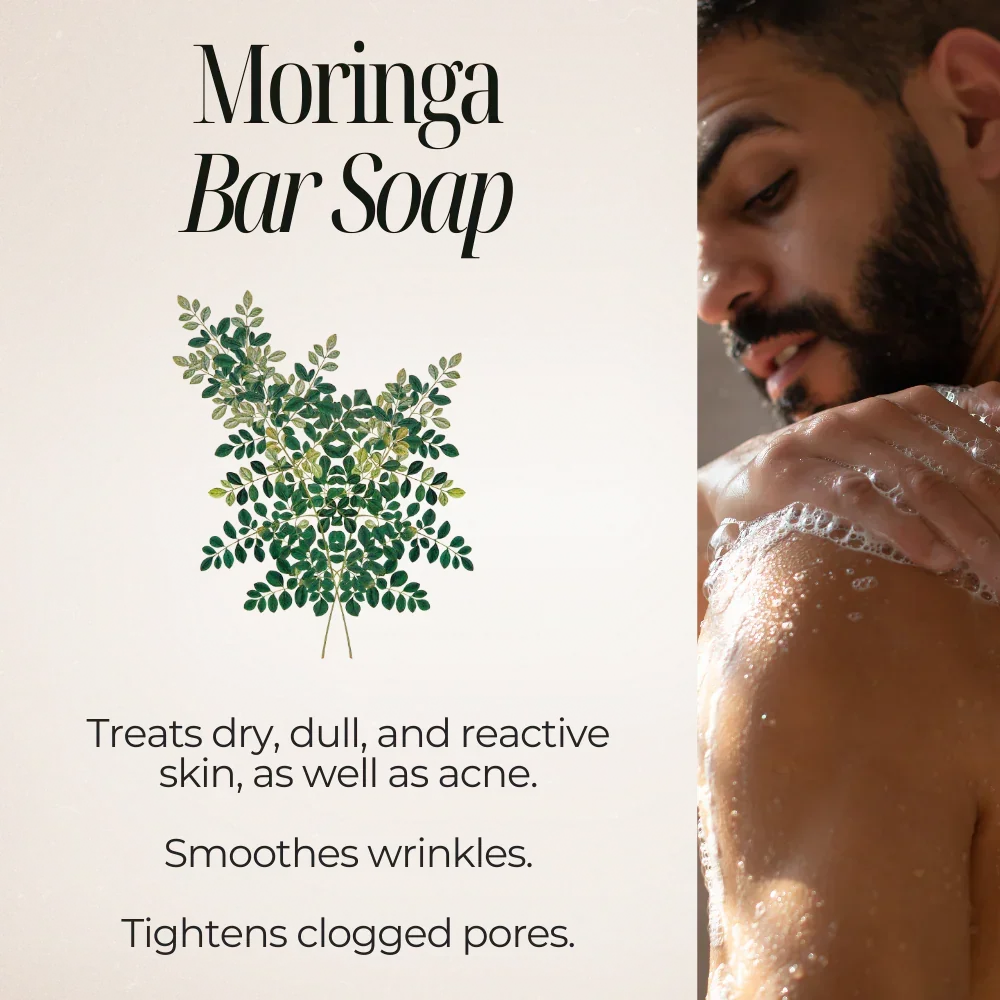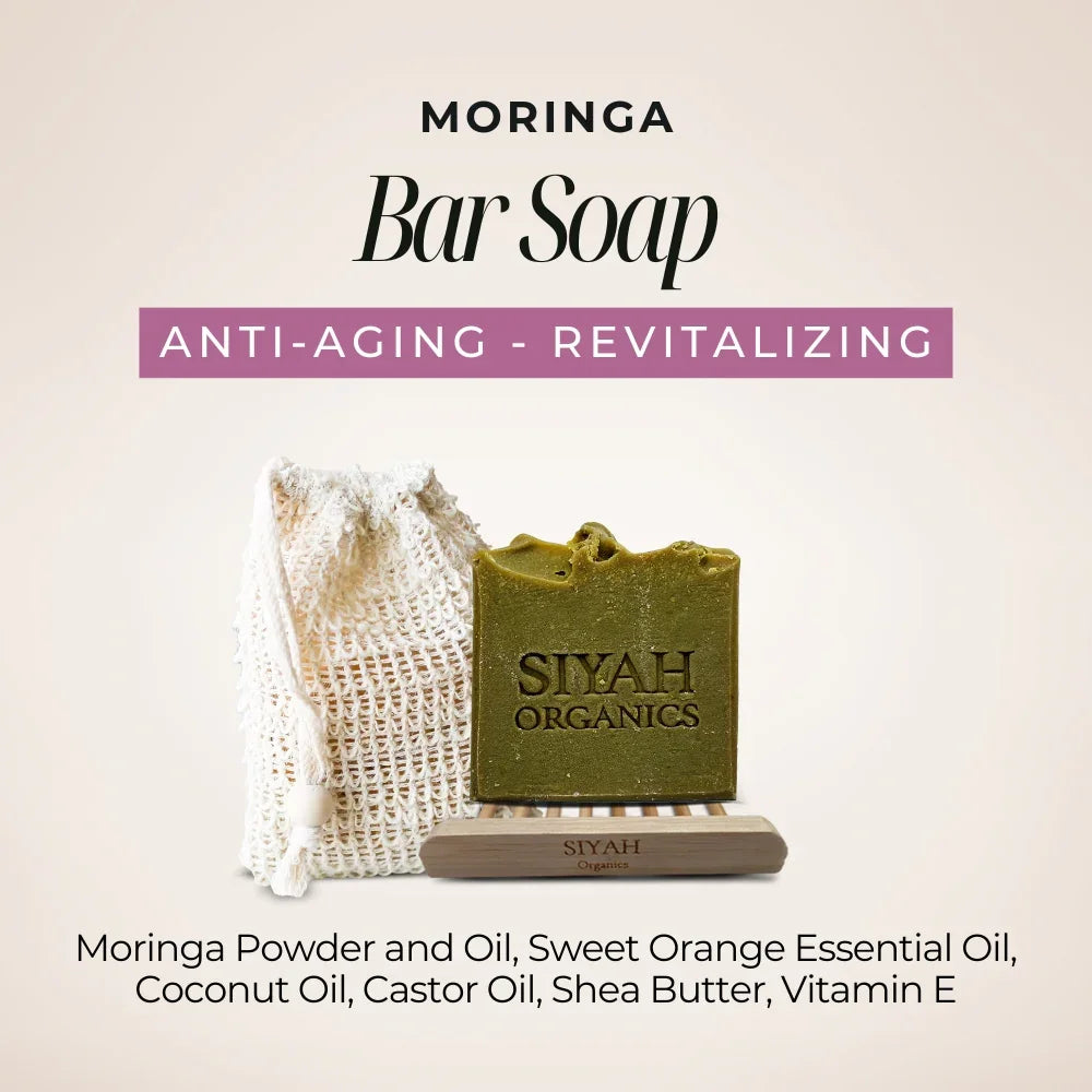 Moringa Powder and Oil, Sweet Orange Essential Oil, Coconut Oil, Castor Oil, Shea Butter, Vitamin E.
