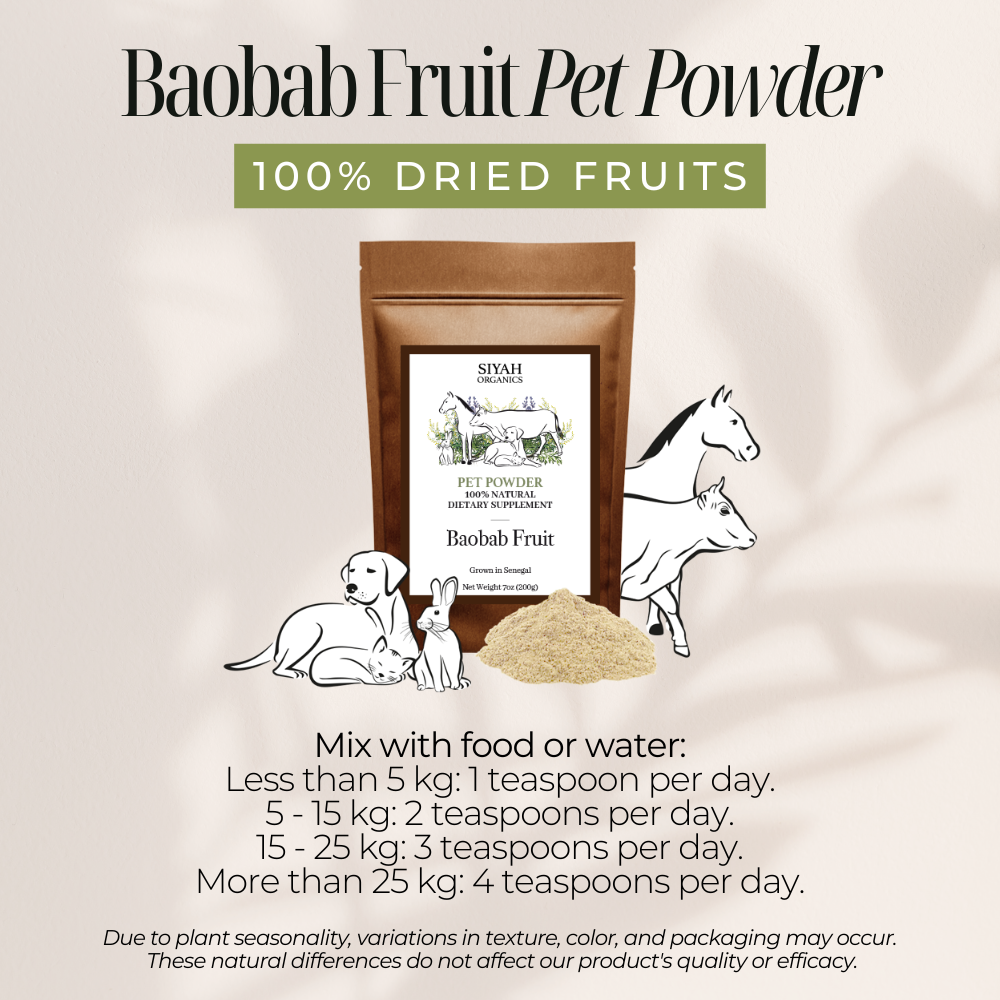 Support your pet’s digestive well-being with the natural benefits of Baobab Fruit. Rich in fiber and essential nutrients, this pet powder helps promote a healthy gut and overall vitality.