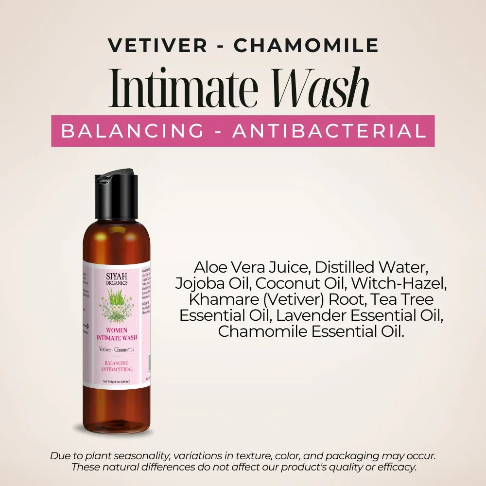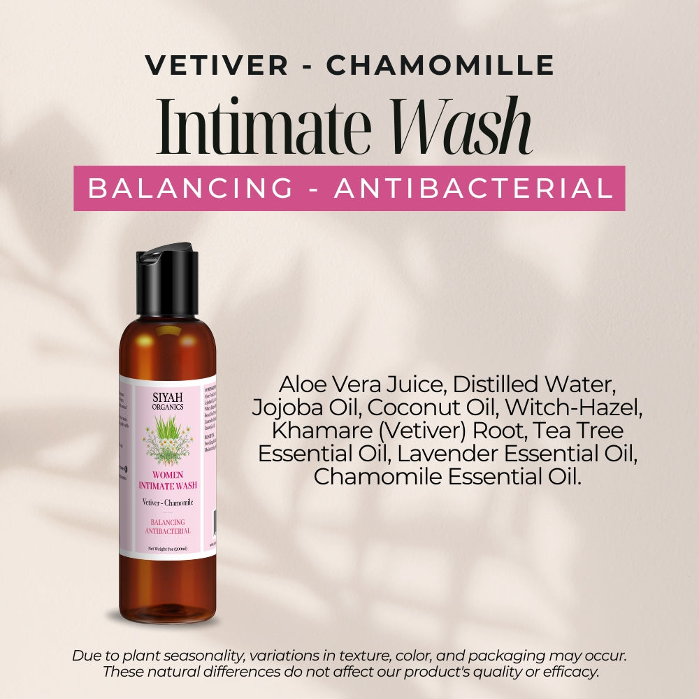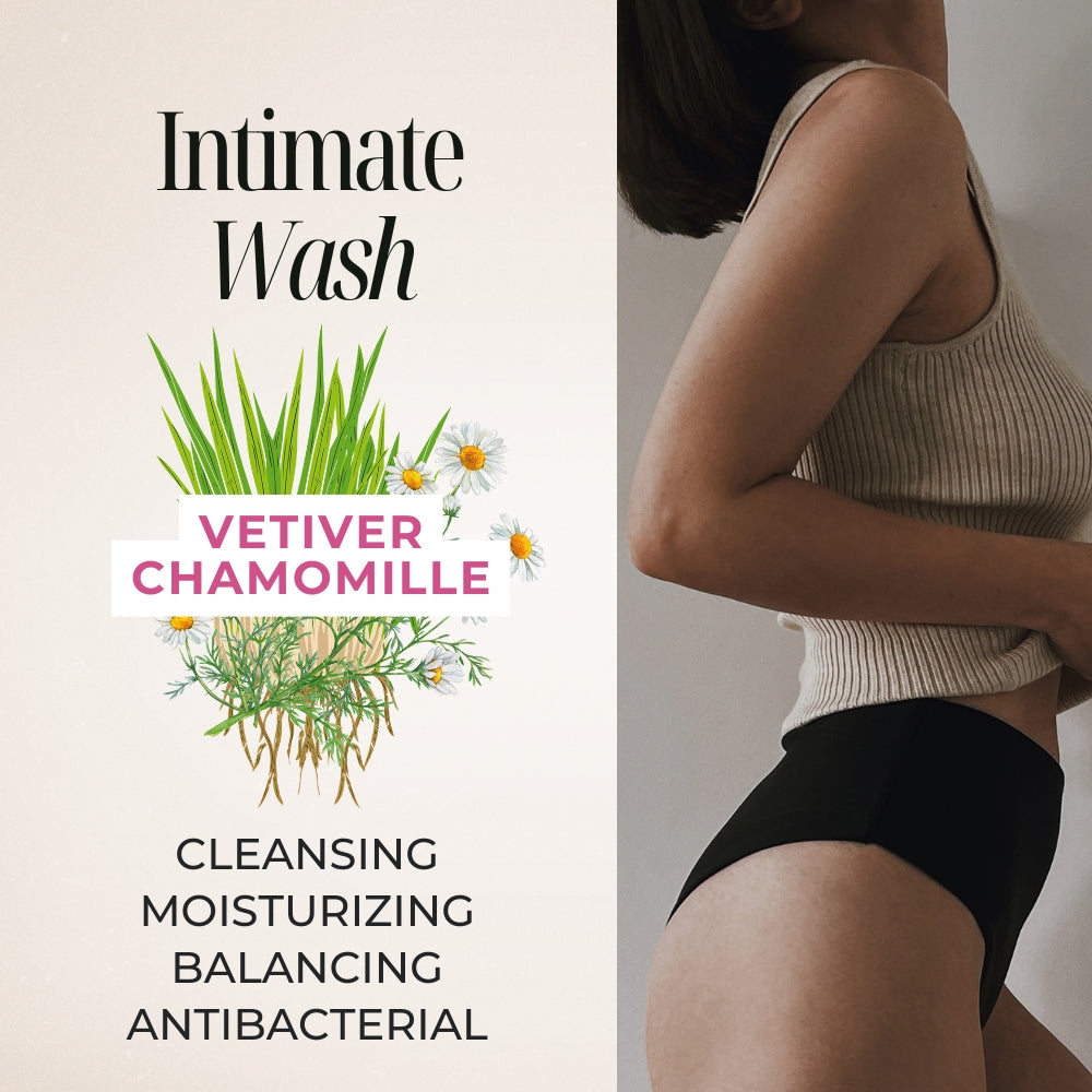 Discover the nurturing benefits of our Vetiver & Chamomile Women’s Intimate Wash.